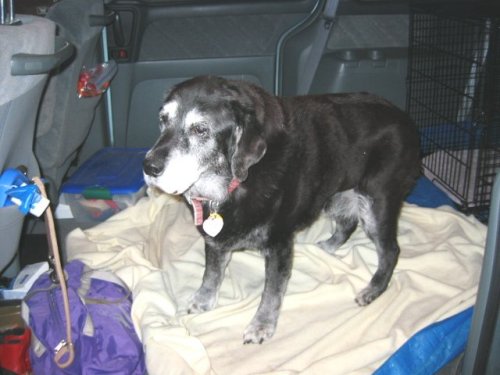 Boomer in the van about to go to the pet store